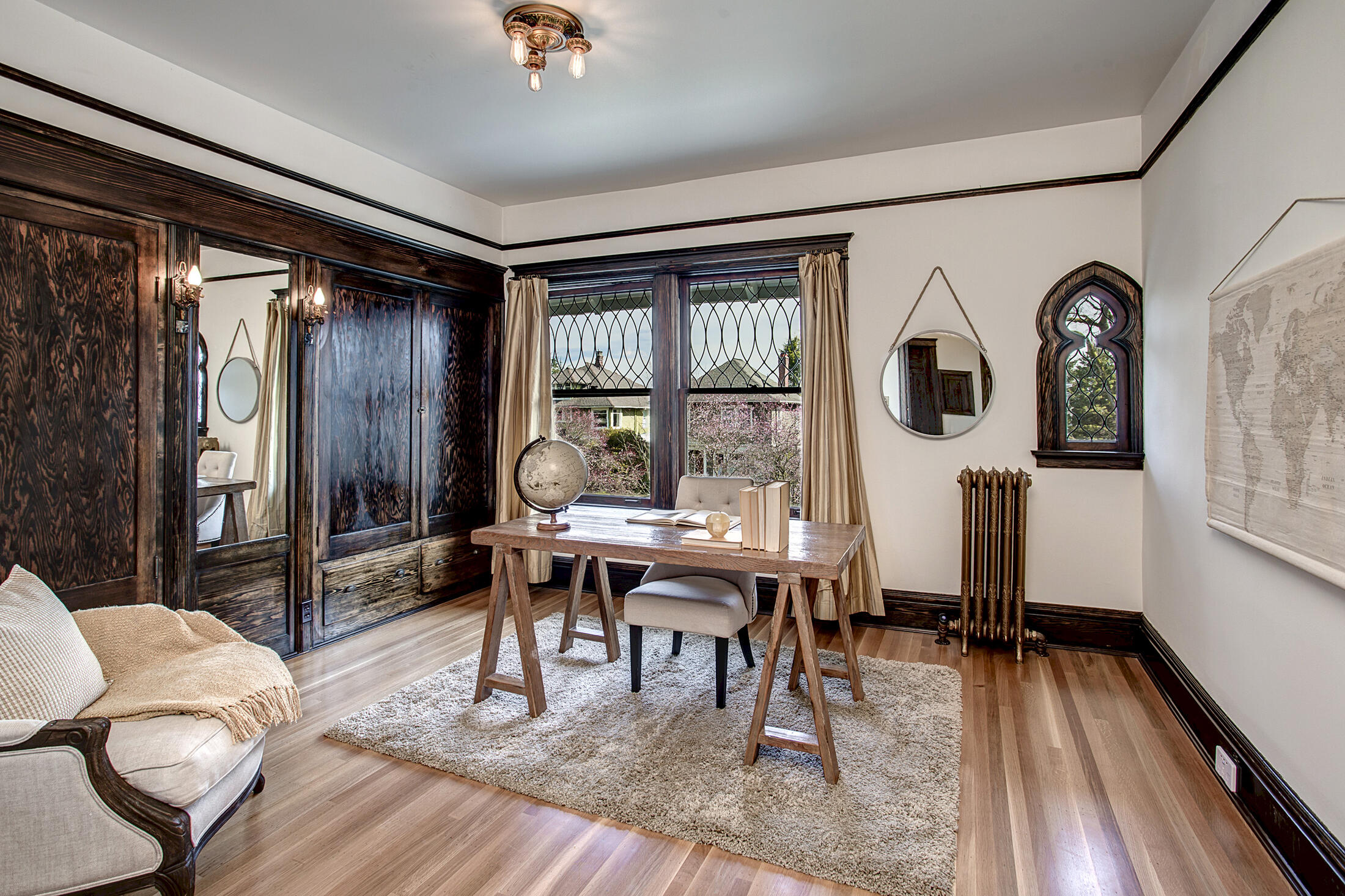 Stunningly restored, this 1905 Capitol Hill home holds charm & traditional features of its era with the convenience & function of today. Grand & spacious in every room, elegant leaded & stained glass windows, beautiful herringbone set, oak floors, and a combination of vintage and transitional fixtures are key features throughout.