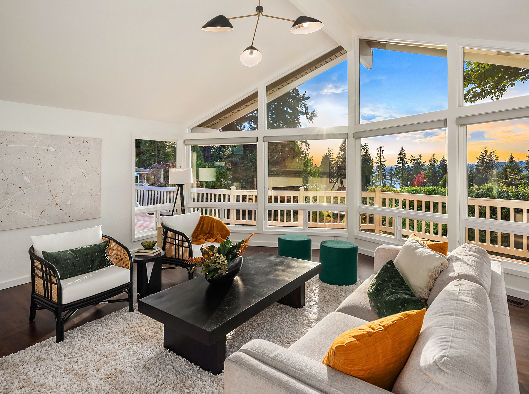 Understated elegance signature to the Pacific Northwest, and perched on the northwestern slope of Clyde Hill, this tastefully updated contemporary home is as comfortable for a party of two as it is for twenty five. Evergreen views of Lake Washington are framed by floor to ceiling windows and an updated warm color palette.
